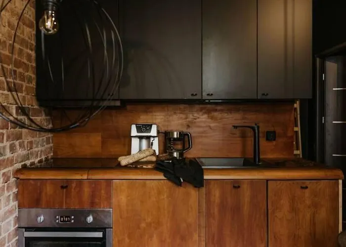 Mikro Czarne Studio Vintage有小厨房. Palmiarnia公车站距离公寓有5分钟的路程.